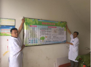 北環(huán)醫(yī)院張慶華副院長和醫(yī)務科的牛曉寧主任一起將健康教育宣傳欄換成新制作的,內(nèi)容有“愛眼健康歌”、“正確做眼保健操”、“中暑的急救方法”等。